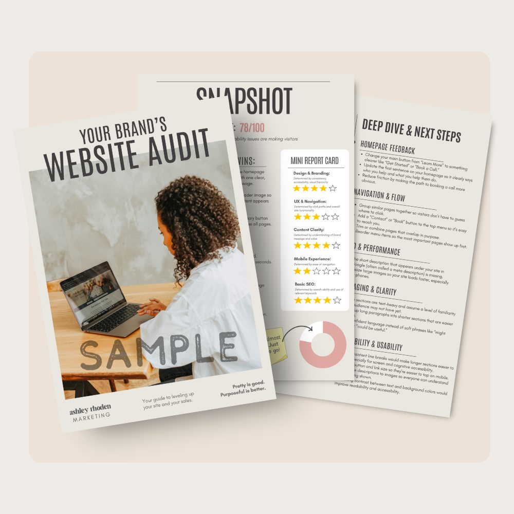 Stop guessing. Get a calm, honest website audit that identifies what’s helping your site, what’s getting in the way, and what would make the biggest difference next.